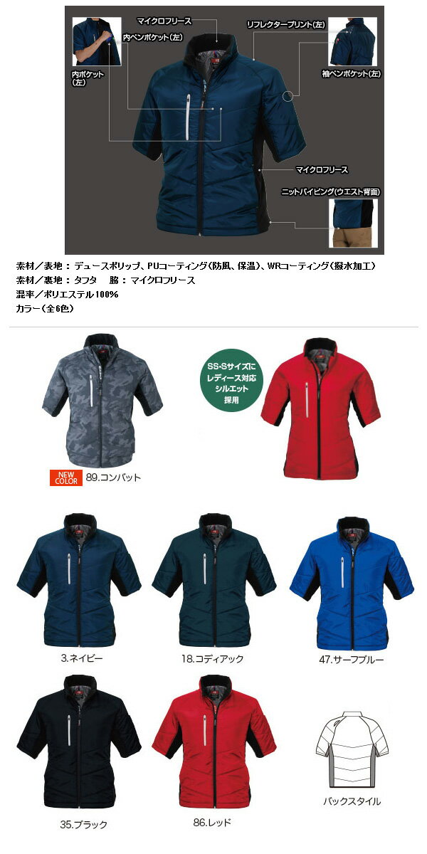 バートル【BURTLE】半袖防寒ブルゾン【MENS メンズ LADEIS レディース】保温性と作業性の革新デザイン!!男女ユニセックスシリーズ 7316 男女兼用(Sサイズはレディースシルエット)