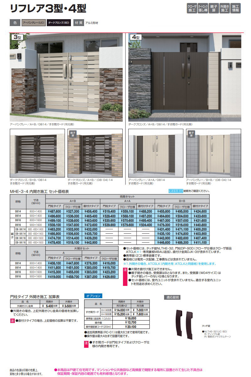 形材門扉 電池錠付き アルミ 塀 鍵 三協アルミ 【電気錠付き門扉 リフレア4型 A+Aタイプ両開きセット 直付けタイプ 0916W900×H1600(扉1枚寸法)】