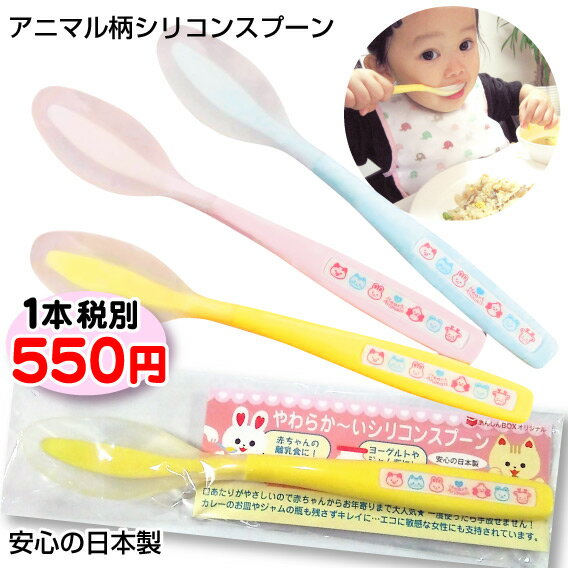 【メール便可!2本組】〈日本製〉アニマル柄シリコンスプーン2本セット べビーからお年寄りまで人気 トコちゃんベルトのおまけで人気 煮沸消毒可 離乳食&ヨーグルトに◎10本まで同梱可【ギフト/HL53202P03Dec16】(母の日/授乳/食事/ベビー食器)