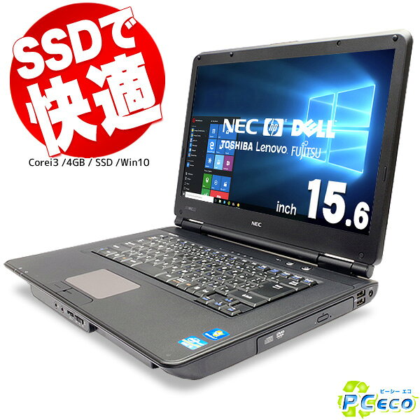 普通に使えてさらに速い! Corei3 ノートパソコン 中古 ssd 店長おまかせ爆速SSDノート Corei3 4GBメモリ Office 付き 中古パソコン 【中古】 【送料無料】